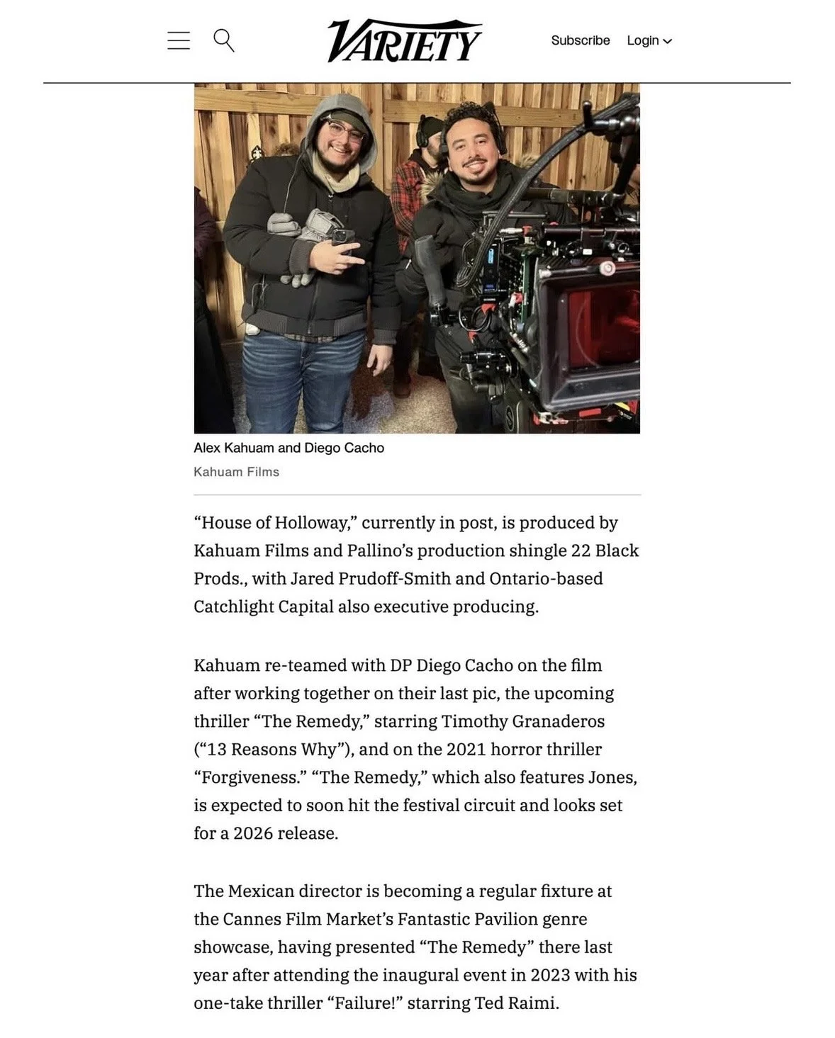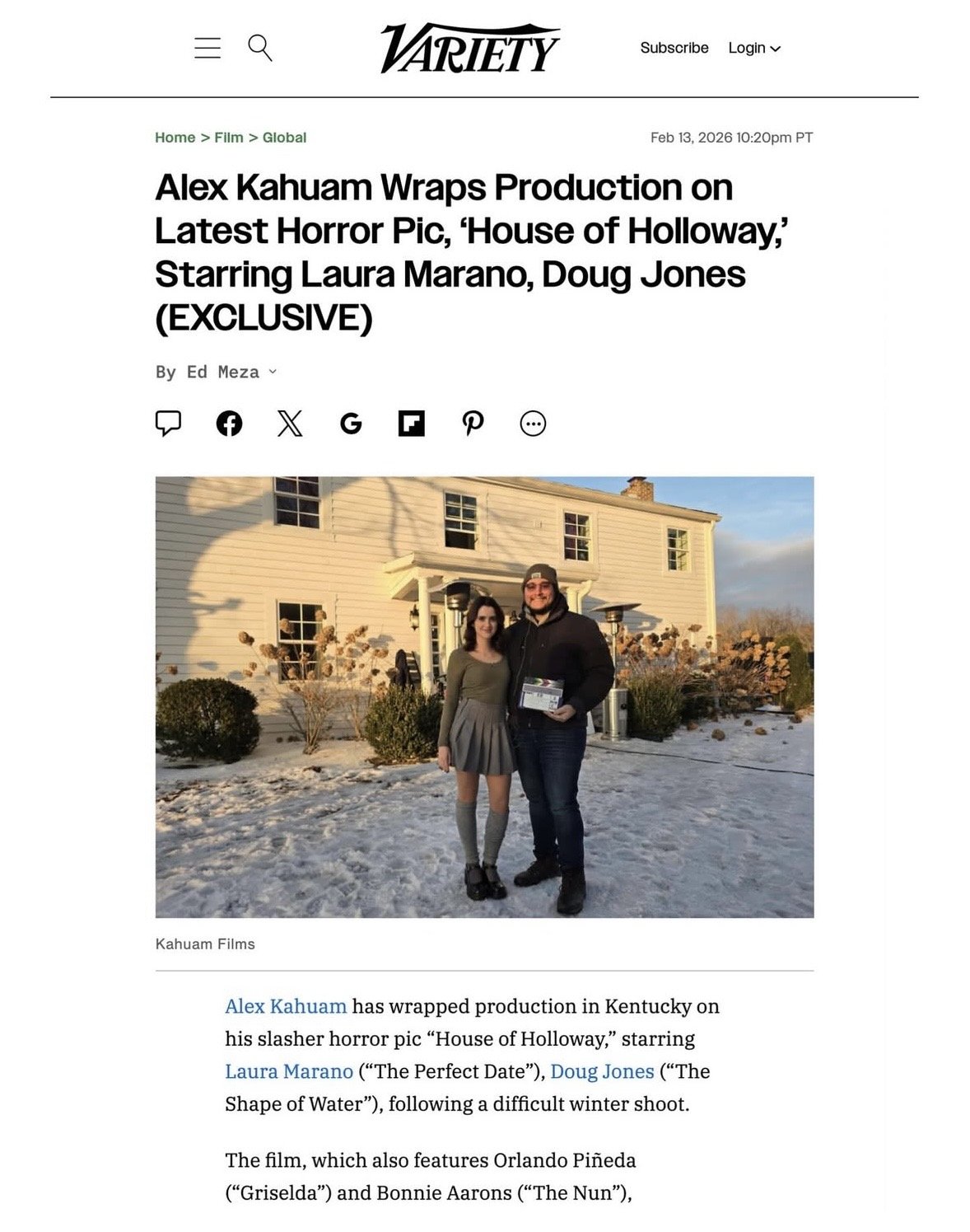 Huge congratulations to Alex Kahuam and Anthony Pallino on their amazing feature film, House of Holloway, which was produced by Kahuam Films and 22 Black Productions. The movie features a fantastic cast, including Laura Marano (“The Perfect Date”), Doug Jones “The Shape of Water”), Bonnie Aarons (“The Nun”), and Orlando Piñeda (“Griselda”).